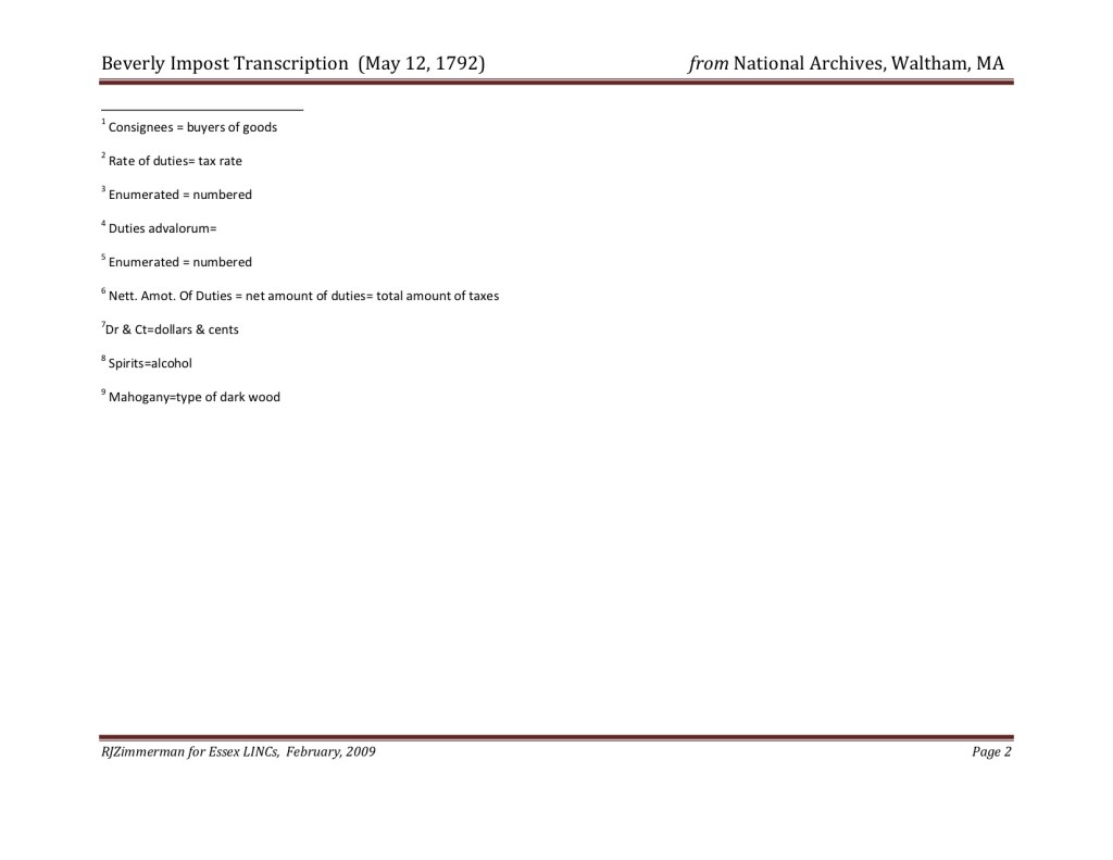 Beverly Impost (May 12, 1792). National Archives, Waltham, MA.