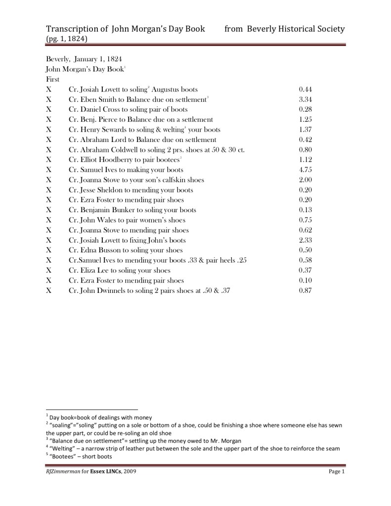 John Morgan’s Day Book (1824), pg. 1. Beverly Historical Society, Beverly, MA. *