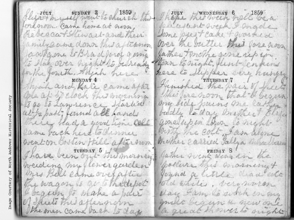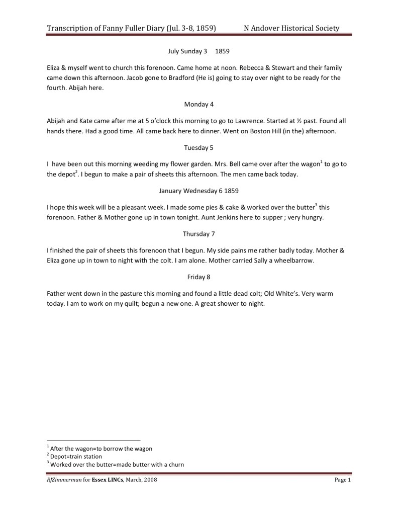 Fanny Fuller Diary (July 3-8, 1859). North Andover Historical Society, North Andover MA.