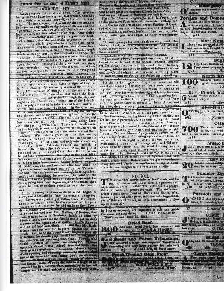 Smith, Margaret. “The Diary of Margaret Smith”, 1678. Daily Herald, Vol. XVII, July 17, 1848. Newburyport: 1848. Newburyport Archival Center.