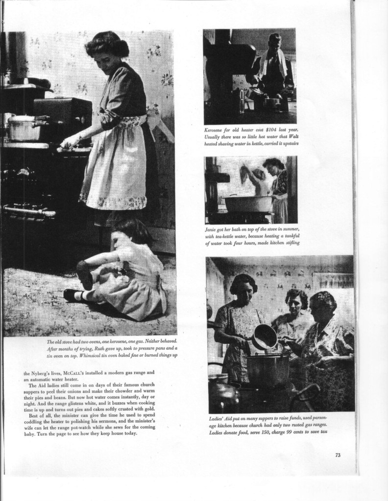 At the parsonage in Newburyport the range and water heater were of ancient vintage. To see what difference it would make in the Nyberg’s lives, McCALL’s installed a modern gas range and an automatic water heater.