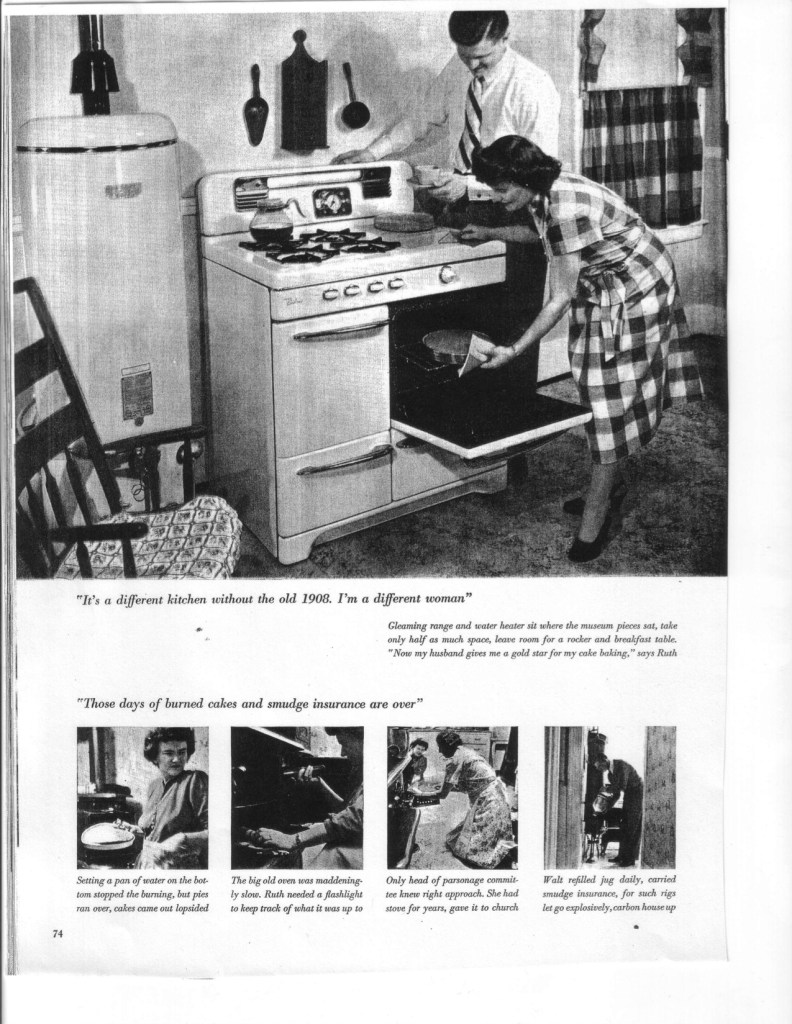 The parsonage range was new in 1908, the water heater was crotchety with age. Ruth Nyberg got by with them, but when a new gas range and automatic water heater came to the parsonage, what a difference they made