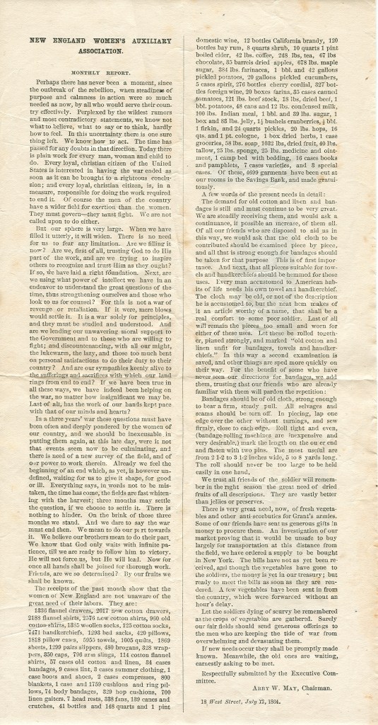 Abby W. May, New England Women’s Auxiliary Association Monthly Meeting (July 12, 1864). Endicott Collection: Rantoul Family Papers, 1773-1915. Historic Beverly, Beverly, MA.