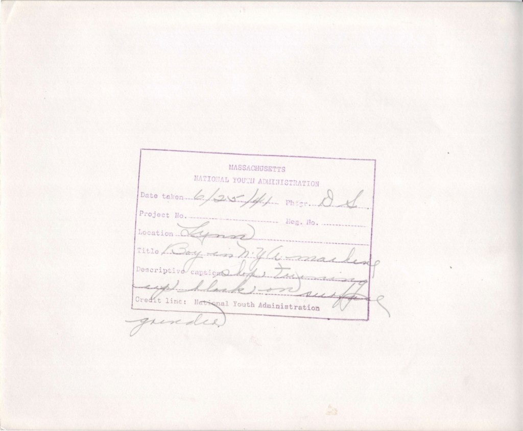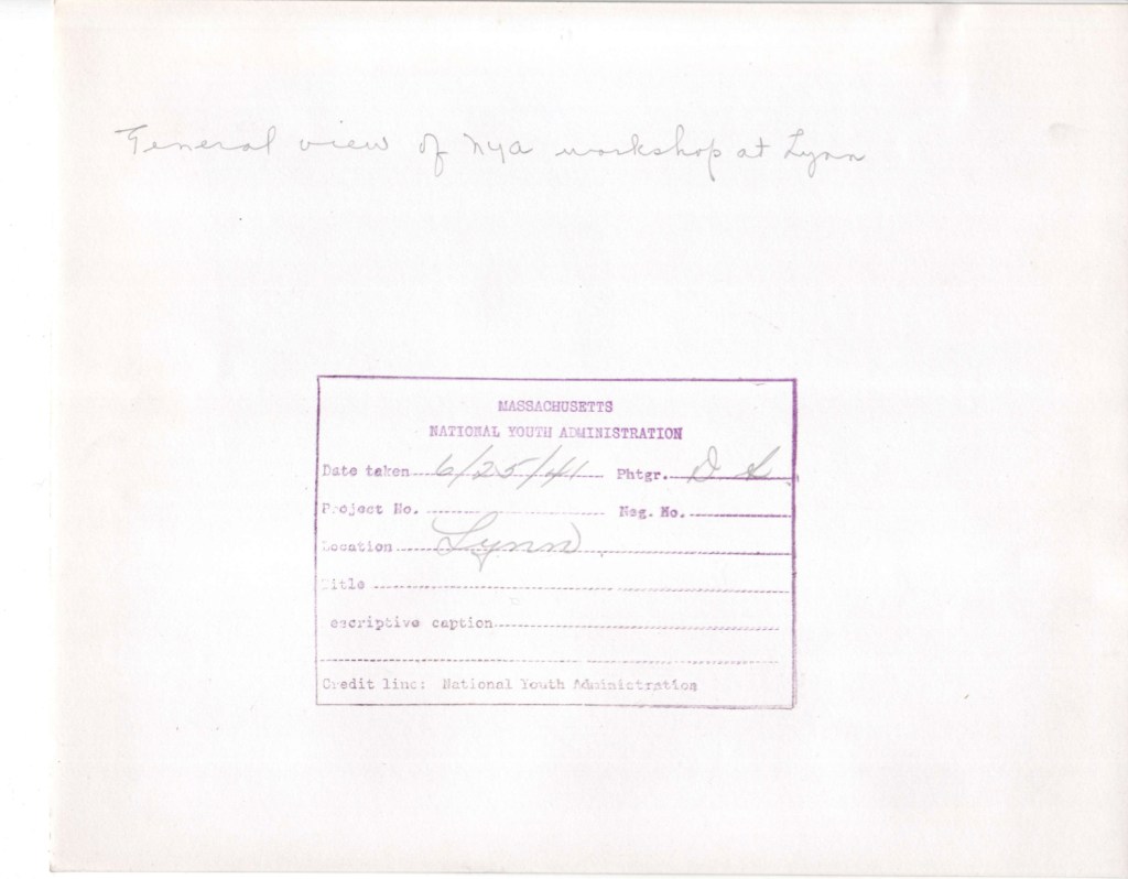 The following photographs document NYA activities in Lynn. Together, the Works Progress Administration and its subsidiary, the National Youth Administration, employed millions of Americans as part of an extended relief program. The overwhelming majority of WPA projects focused on creating and repairing infrastructure. Other projects were artistic in nature. Youths involved in NYA projects worked on projects within their schools.