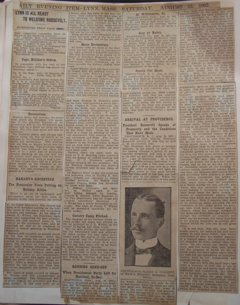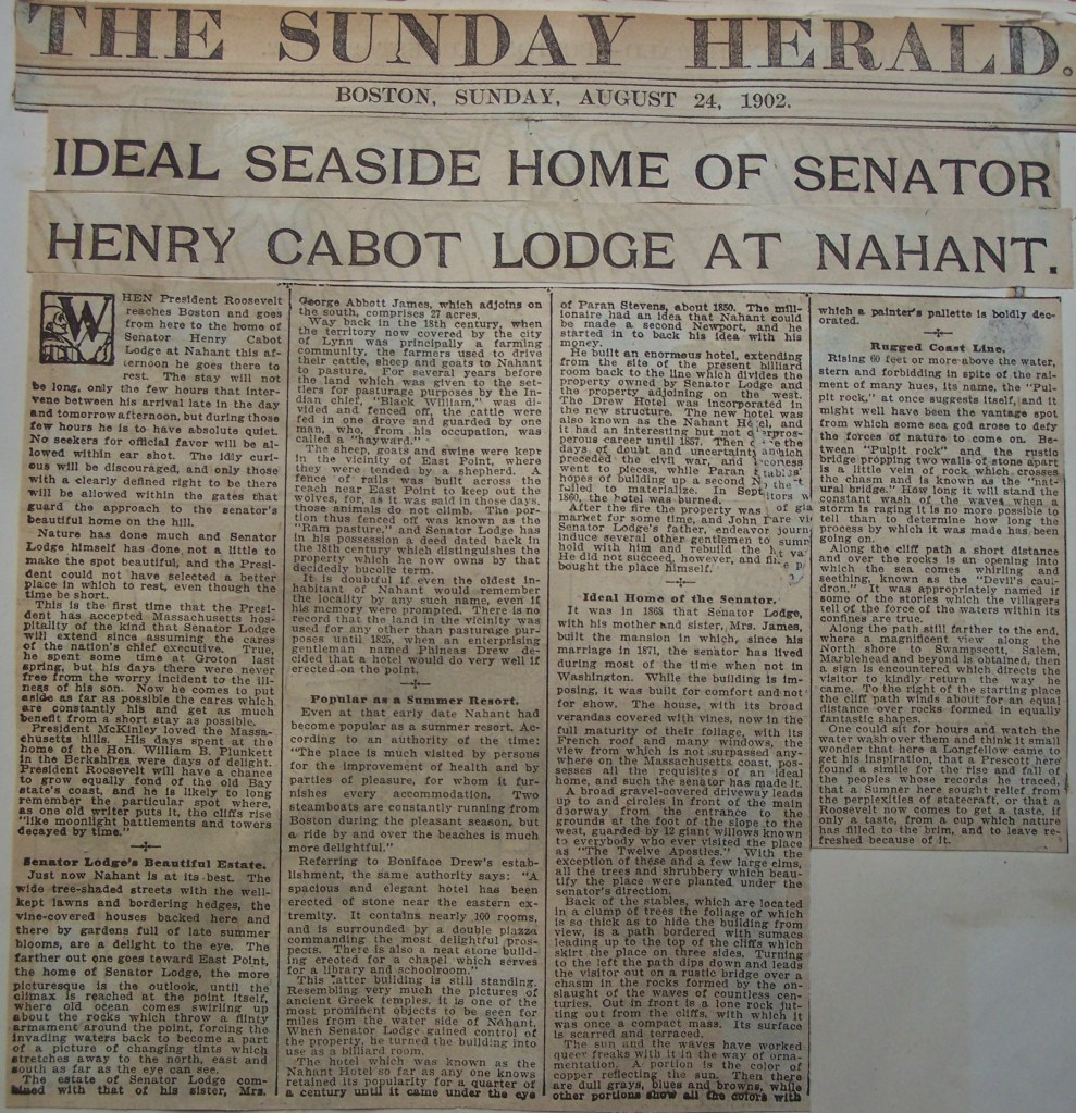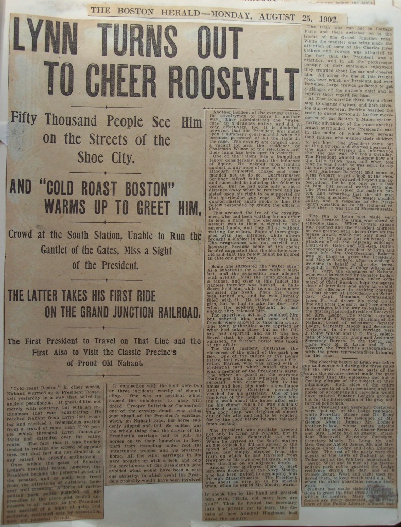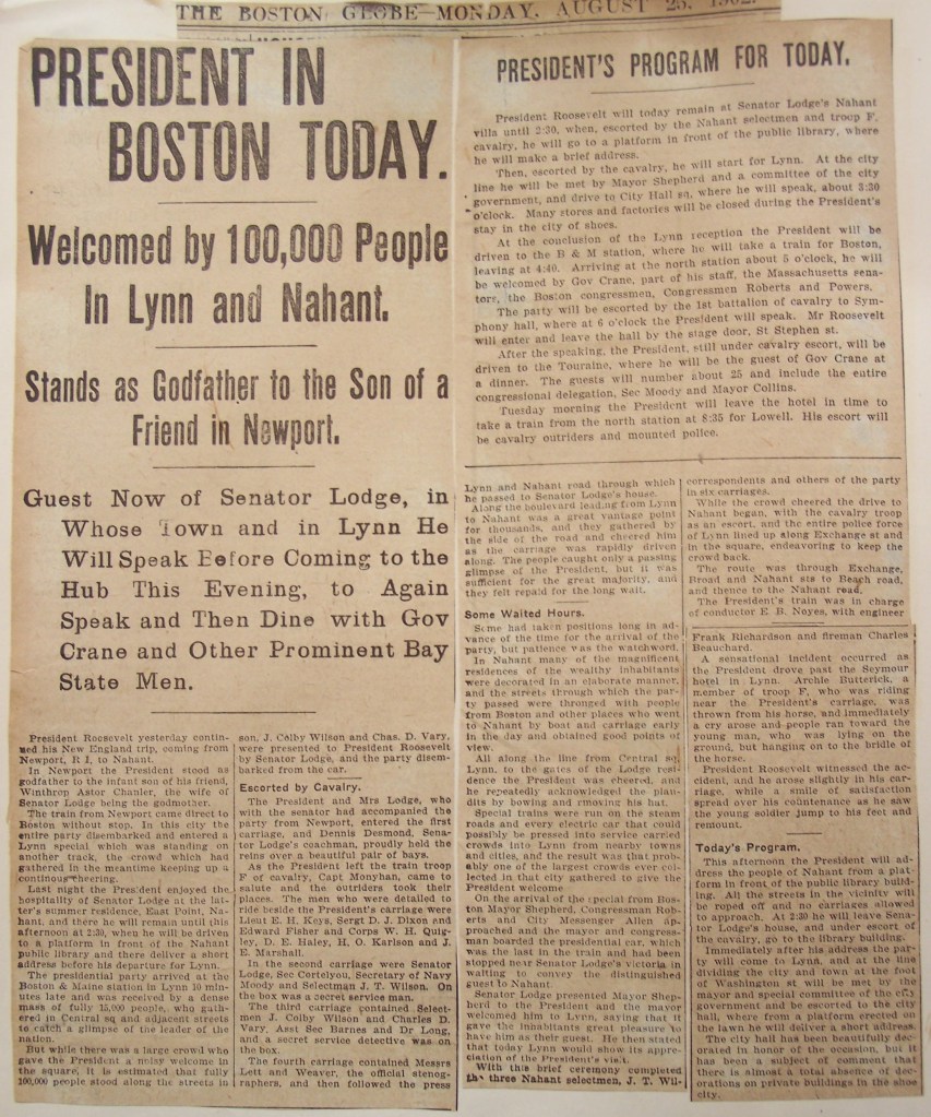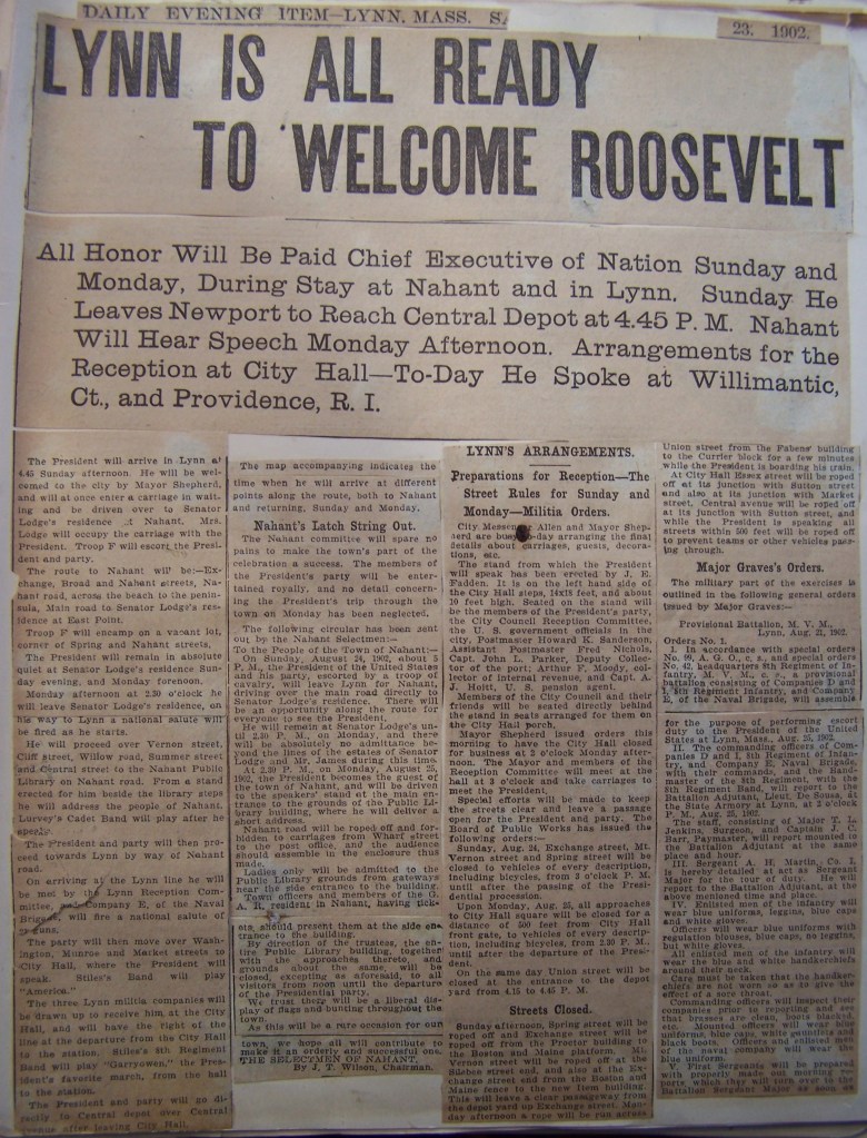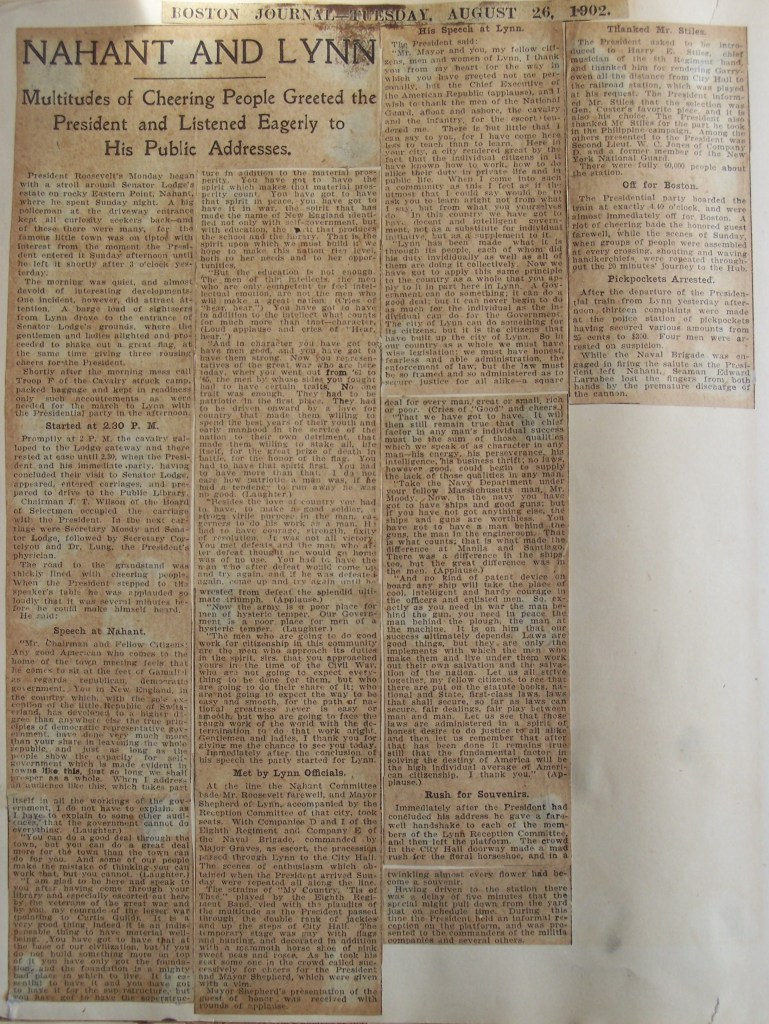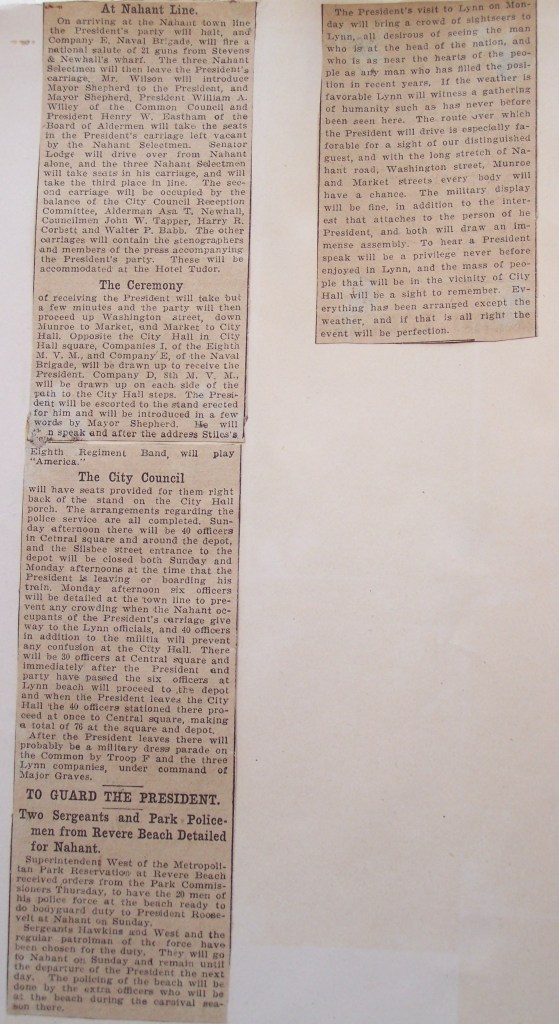 “Collection: A Book of Clippings and Photographs Relating to President Roosevelt’s Visit to Nahant, August 1902”. Nahant Public Library, Nahant, MA.