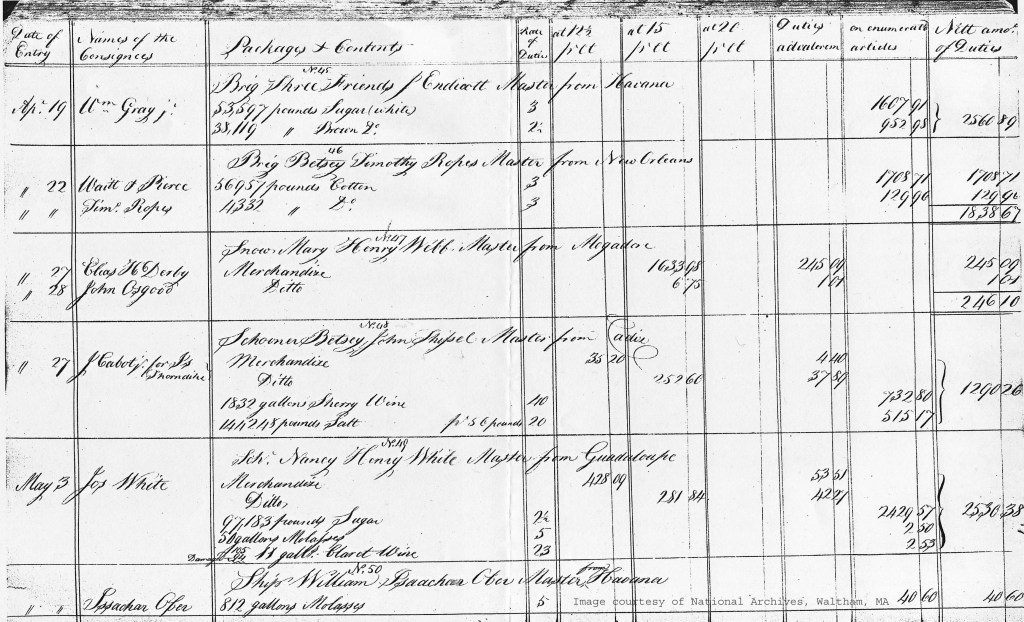 Salem Impost (April 19, 1802). National Archives, Waltham, MA.