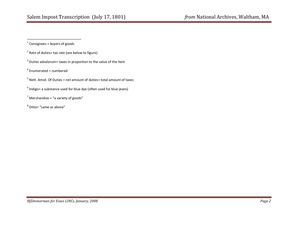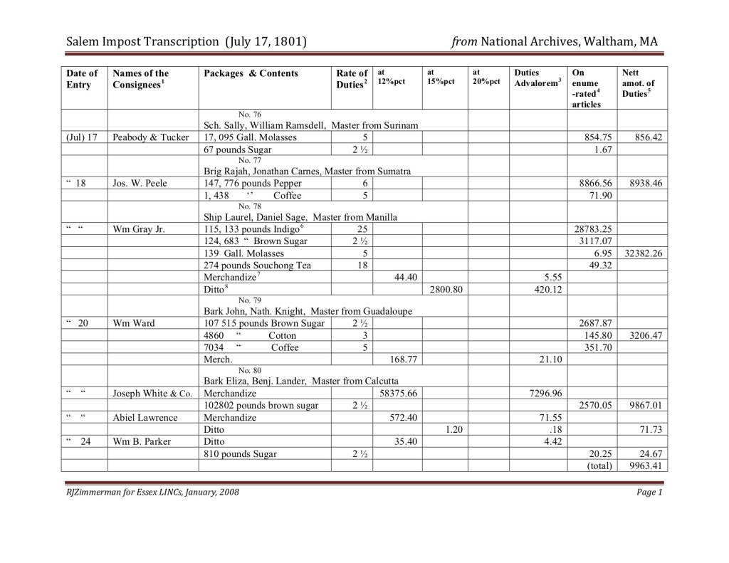 Salem Impost (July 17, 1801). National Archives, Waltham, MA.