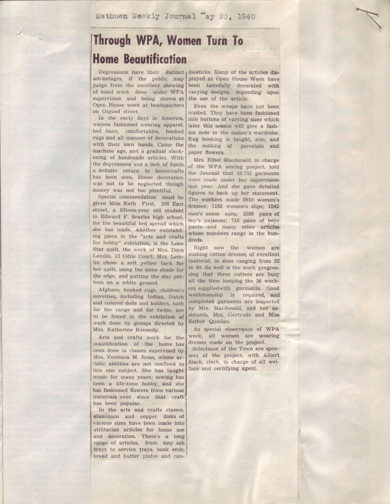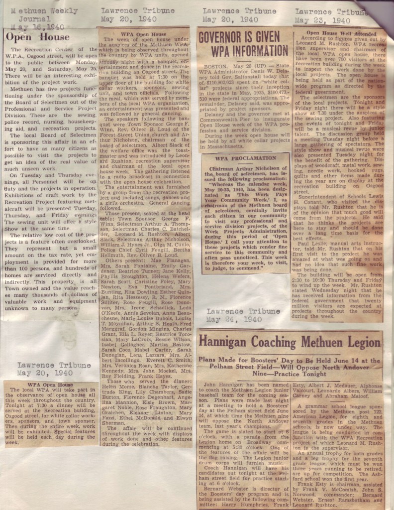 Methuen Weekly Journal (May 1623, 1940) and Lawrence Tribune (May 20-24, 1940). National Archives and Records Administration, Waltham, MA.